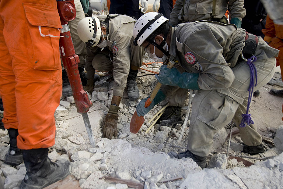 1月16日,海地首都太子港,中國國際救援隊(duì)在聯(lián)海團(tuán)總部對遇難者進(jìn)行搜尋工作。此前八名中方失蹤人員的遺體已全被找到。圖片來源:中國新聞網(wǎng)