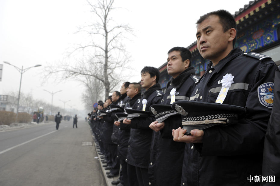 1月19日,北京民眾自發守候在通往北京八寶山殯儀館的路口迎接英烈的靈柩。當日,八位海地地震遇難中國維和警察的靈柩搭乘專機將抵達北京。中新網記者 金碩 攝