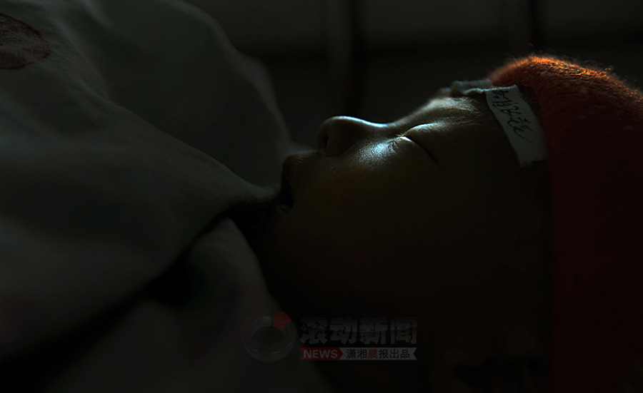 1月16日,小振和一個人安靜地躺在醫院的小床上睡著覺。瀟湘晨報 記者 楊抒懷 攝