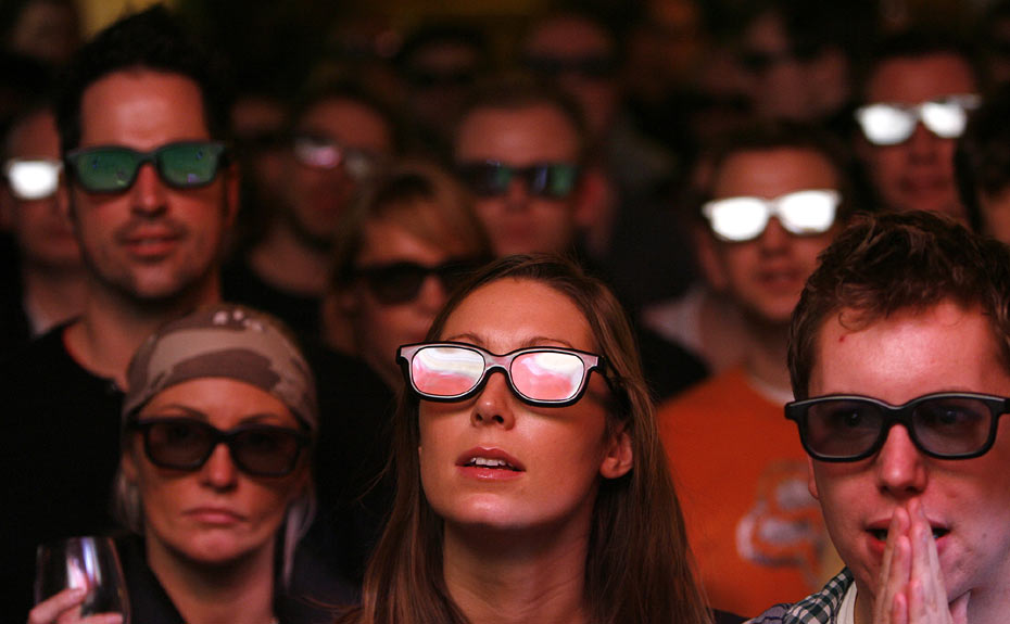 圖為球迷在倫敦的酒吧里享受3D足球直播。北京時間2月1日,英國體育頻道首次使用3D技術對阿森納與曼聯的比賽進行電視直播。據悉,今年南非世界杯也將進行3D轉播。