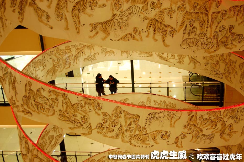 2月3日,一幅長200米的“千虎畫卷”亮相上海市解放西路梅龍鎮(zhèn)廣場,喜迎農(nóng)歷虎年和上海世博會。這幅作品由專長畫虎的農(nóng)民畫家肖彥卿歷時3個多月時間手繪2010只老虎而成,畫卷展示結(jié)束后將捐獻(xiàn)給2010年上海世博會公眾參與館。中新社發(fā) 許康平 攝