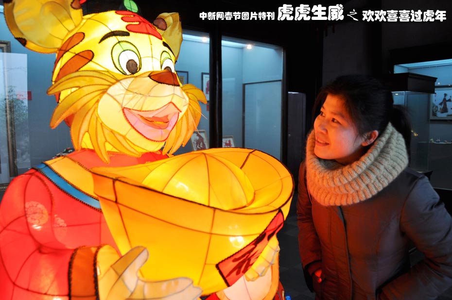 2月3日,一名游客在南京民俗博物館舉辦的“虎年民間藝術大展”上觀賞“虎燈”。此次大展展示了云錦、剪紙、金箔、燈彩等20個門類50多名藝術家和傳承人的近百件民間虎文化作品。據了解,虎年民間藝術大展4月5日結束。 中新社發 谷昌旺 攝