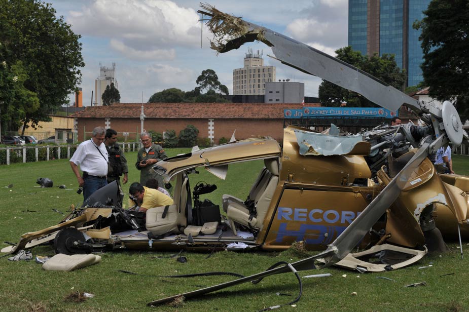 當(dāng)?shù)貢r(shí)間2月10日上午,巴西記錄電視臺(tái)的一架直升機(jī)在巴西圣保羅南部一賽馬俱樂(lè)部的草坪上墜落,一名飛行員當(dāng)場(chǎng)身亡。圖片來(lái)源:中國(guó)新聞網(wǎng)