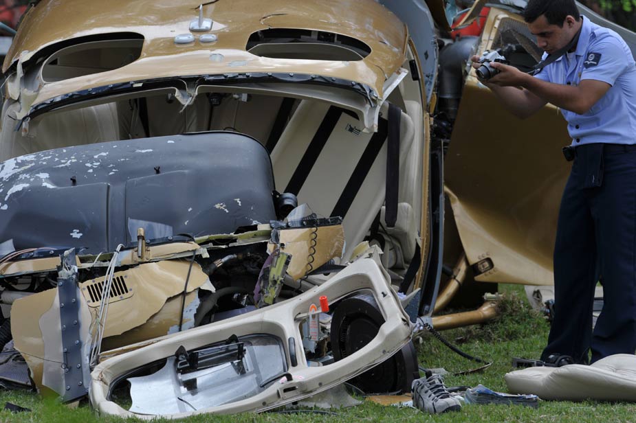 當?shù)貢r間2月10日上午,巴西記錄電視臺的一架直升機在巴西圣保羅南部一賽馬俱樂部的草坪上墜落,一名飛行員當場身亡。圖片來源:中國新聞網(wǎng)
