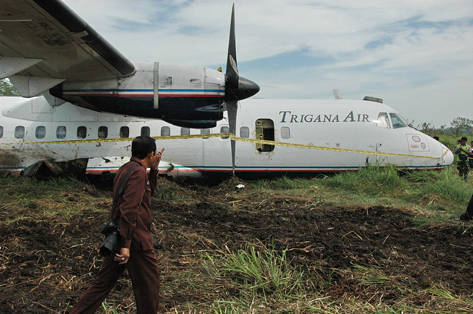 印尼當地時間2月11日,印尼一架客機成功迫降婆羅洲島的一片稻田,機上47名乘客和5名機組人員除兩人腿部骨折外,其他人均安然無恙。圖片來源:中國新聞網