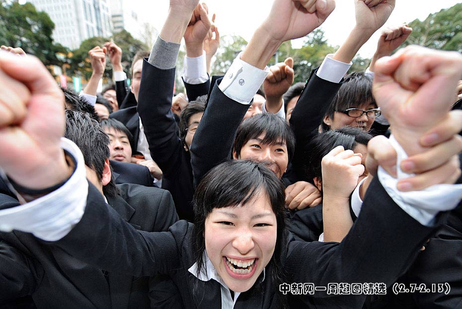 2月10日,日本東京職業(yè)學(xué)校的學(xué)生在求職動員會上伸出拳頭展現(xiàn)信心。日本的失業(yè)率達5%,2011屆畢業(yè)生將面臨嚴峻就業(yè)形式。圖片來源:中國新聞網(wǎng)>>點擊觀看詳細內(nèi)容
