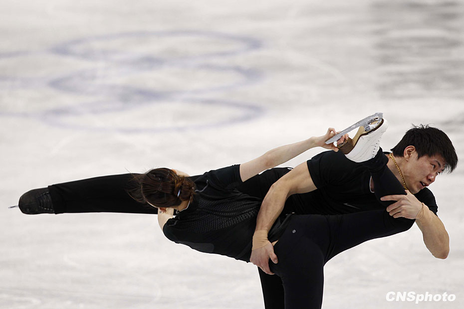 當(dāng)?shù)貢r間2月13日,中國花樣滑冰隊龐清/佟健、張丹/張昊在溫哥華太平洋體育館,利用最后的休息時間重復(fù)練習(xí)積極備戰(zhàn)即將到來的比賽。中新社記者 盛佳鵬 攝