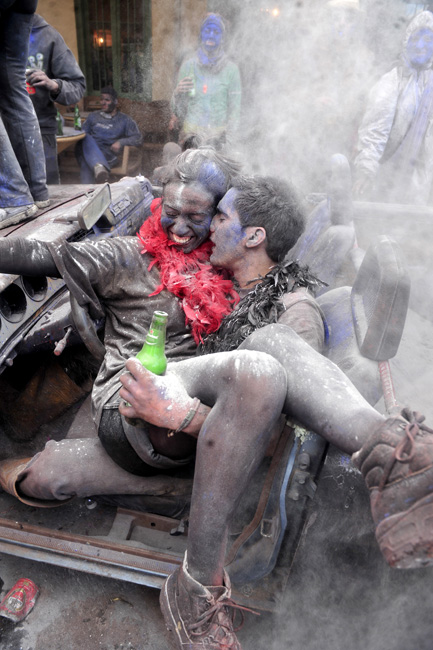 2月15日,希臘港口加拉西迪,狂歡者在街頭參加“面粉大戰(zhàn)”。“面粉大戰(zhàn)”是當(dāng)?shù)貞c祝狂歡季結(jié)束的一項(xiàng)傳統(tǒng)活動(dòng),隨后將是為期40天的齋戒月直至復(fù)活節(jié)。圖片來(lái)源:中國(guó)新聞網(wǎng)