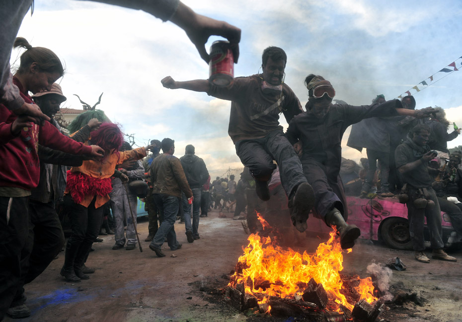 2月15日,希臘港口加拉西迪,狂歡者在街頭參加“面粉大戰(zhàn)”。“面粉大戰(zhàn)”是當(dāng)?shù)貞c祝狂歡季結(jié)束的一項(xiàng)傳統(tǒng)活動,隨后將是為期40天的齋戒月直至復(fù)活節(jié)。圖片來源:中國新聞網(wǎng)