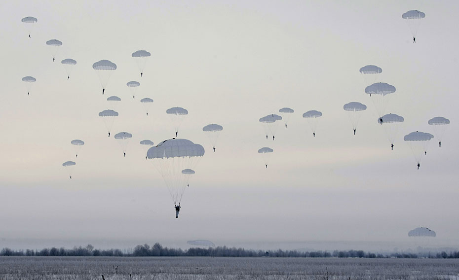 2月18日,俄羅斯第98空降師在莫斯科以東320公里的伊萬諾沃市附近舉行雪地空降演習。圖片來源:中國新聞網