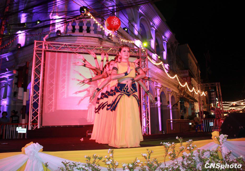泰國普吉島20日舉辦為期三天的大型活動(dòng)慶祝中國春節(jié)。普吉中學(xué)孔子課堂應(yīng)邀參加了本次慶祝活動(dòng),包括舉辦中華飲食、中國文化工藝品、以及漢語教材為內(nèi)容的展覽。圖為慶祝活動(dòng)中當(dāng)?shù)貙W(xué)生表演的千手觀音舞蹈。 中新社發(fā) 顧時(shí)宏 攝