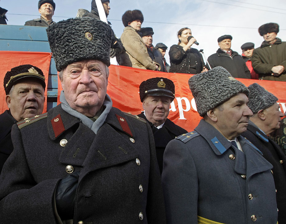 2月23日,俄羅斯莫斯科,示威者參加俄羅斯共產(chǎn)黨組織的集會(huì),抗議軍隊(duì)改革。圖片來源:中國(guó)新聞網(wǎng)