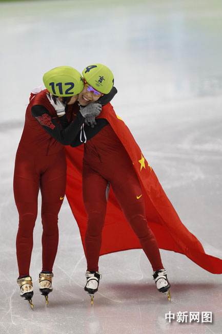 北京時(shí)間27日中午,中國選手王濛在2010年溫哥華冬奧會(huì)短道速滑女子1000米的決賽中摘得金牌。圖片來源:中國新聞網(wǎng)