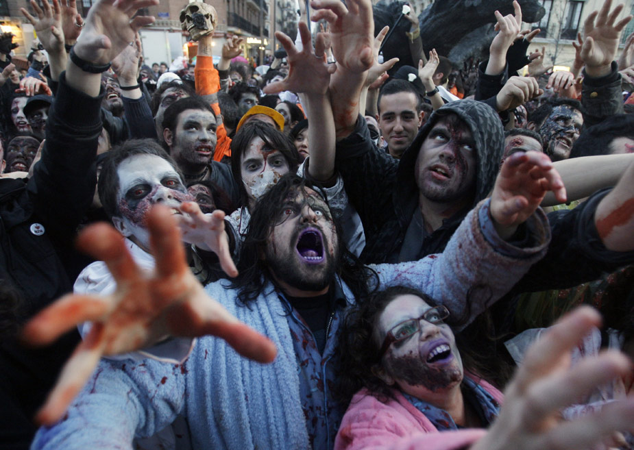 當(dāng)?shù)貢r(shí)間2月27日,在西班牙馬德里,眾多愛好者裝扮成“僵尸”的模樣,在街頭舉行巡游活動(dòng)。