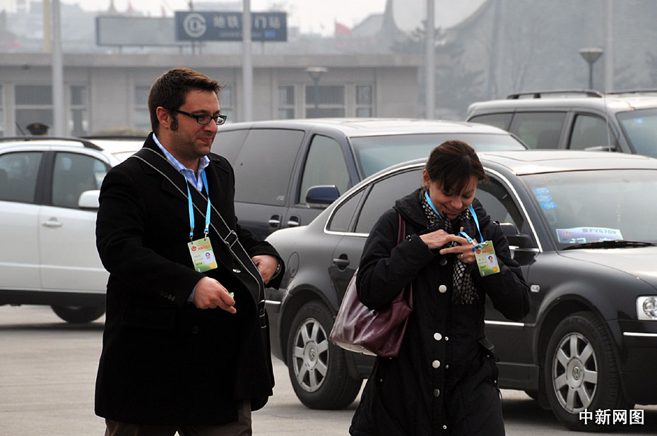 3月3日下午,全國政協(xié)十一屆三次會議在北京開幕。外國記者抵達人民大會堂對中國“兩會”進行報道。中新網(wǎng)記者 吳歆 攝