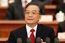 3月5日上午9時,十一屆全國人大三次會議在北京隆重開幕。國務院總理溫家寶作政府工作報告。圖片來源:中國新聞網