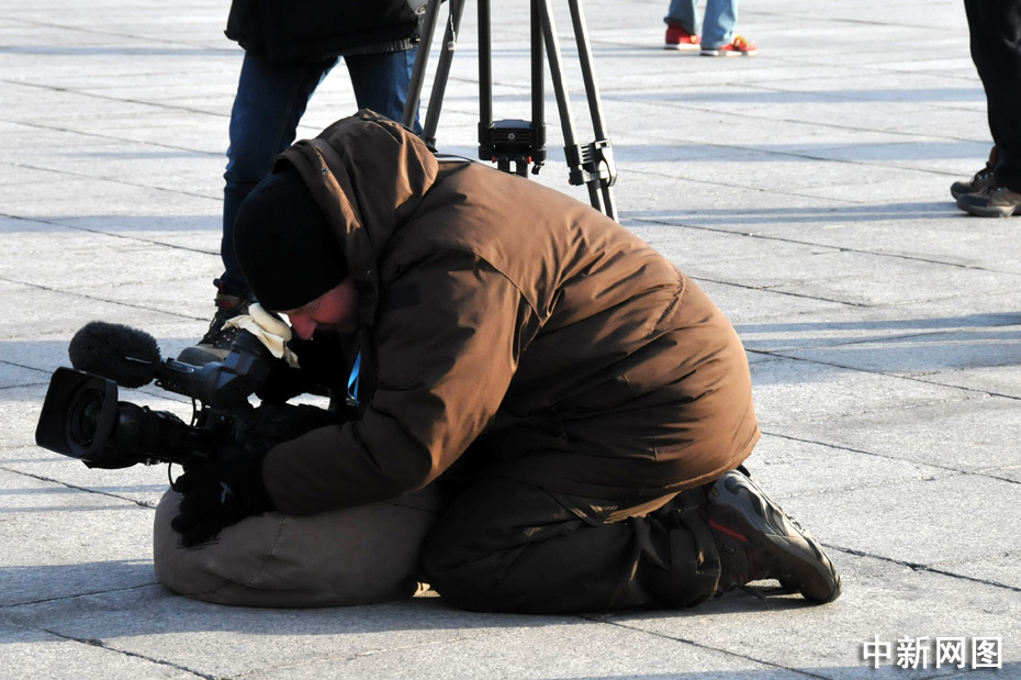 3月5日上午9時,十一屆全國人大三次會議在北京隆重開幕。國務院總理溫家寶作政府工作報告。圖為人民大會堂前等待采訪的記者。中新網記者 吳歆攝