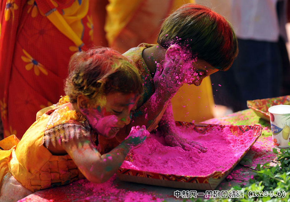 2月28日,印度舉行慶祝灑紅節活動,人們互撒顏料以示祝福。 灑紅節是印度最盛大的節日之一,在每年2月至3月間舉行。按照傳統習俗,人們會在自己的臉上和身上涂抹顏料,還向別人身上拋撒彩色顏料和粉末。圖片來源:中國新聞網>>點擊觀看詳細內容