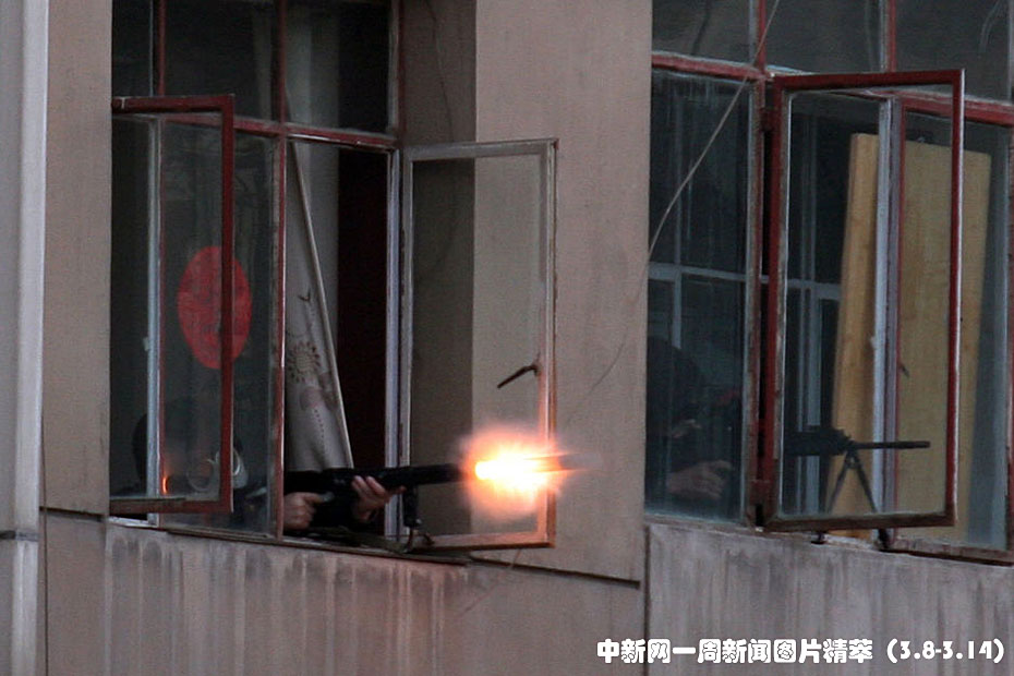周四,甘肅蘭州,警方向槍殺特警嫌犯的藏匿點開火。當天,轟動全國的蘭州槍擊案嫌犯付曉霖被警方發(fā)現(xiàn),嫌犯躲進一居民樓內。雙方對峙長達11個小時,期間人質被解救,最終特警破門進入嫌犯所在屋內將其擊斃。圖片來源:中國新聞網(wǎng)
