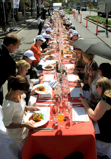 近日,澳大利亞墨爾本,人們在號稱“世界上最長的午餐”活動中享受美味佳肴。圖片來源:中國新聞網