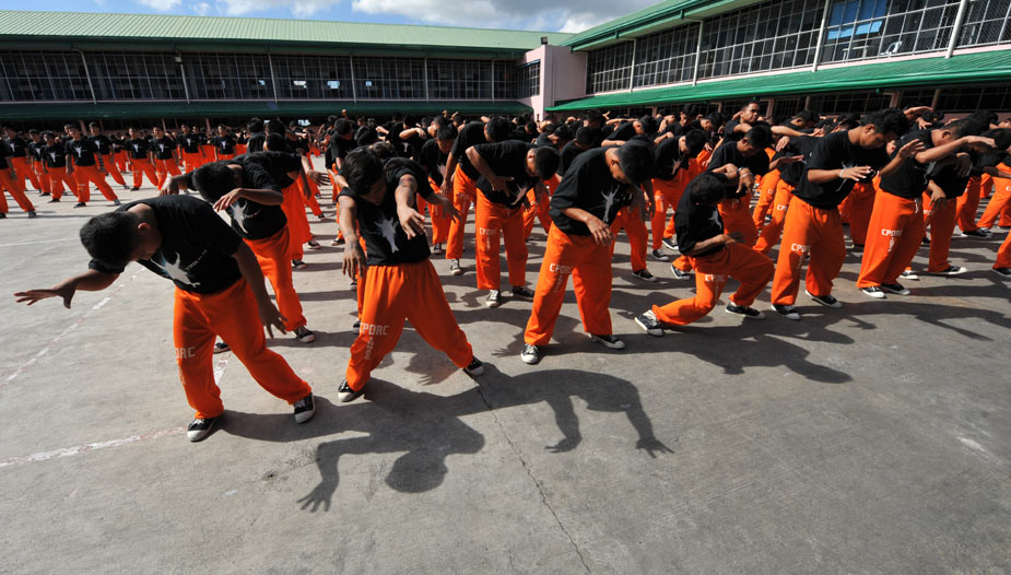 近日,在菲律賓超過1500名囚犯在監(jiān)獄中集體學(xué)習(xí)已故歌壇巨星杰克遜的舞蹈,以此來激起他們生活的斗志。圖片來源:中國新聞網(wǎng)