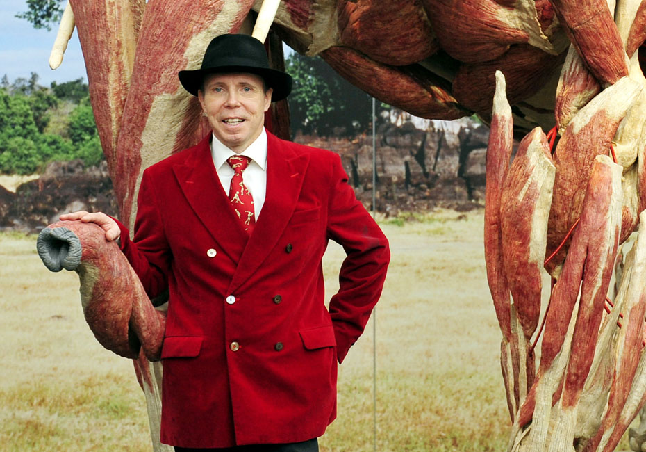 德國著名解剖學家鞏特爾·馮·哈根斯博士被稱為“死亡先生”,目前展出的是有史以來的最大的動物尸體。體型巨大的“桑芭”尸體高3.5米,重3.2噸。據悉“桑芭”將于2010年4月歸還諾因基興動物園。圖片來源:中國新聞網