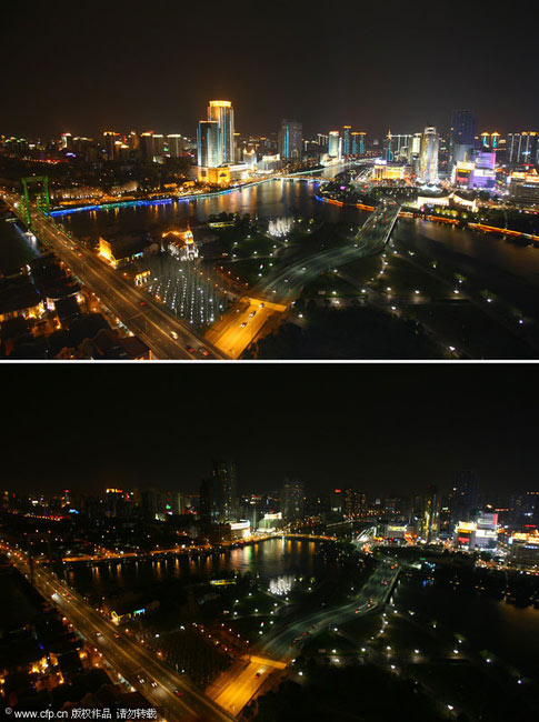 當日,世界自然基金會倡導的“地球一小時”活動得到全世界100多個國家和地區響應。中國的北京、上海、長沙、香港等許多城市也加入到這一活動中。圖片來源:中國新聞網