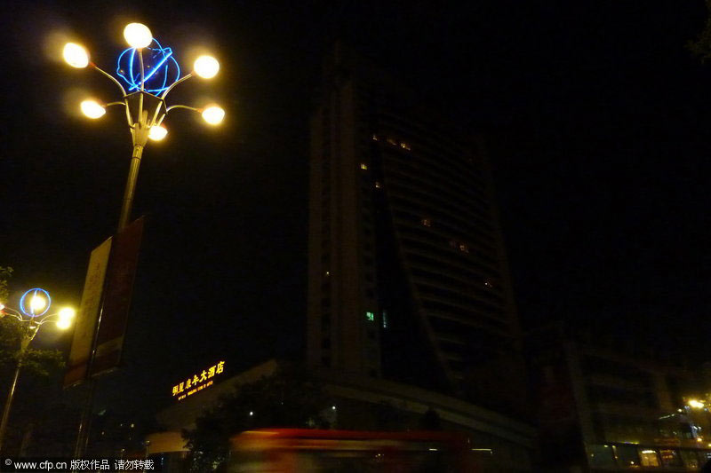 3月27日20時30分,四川省遂寧市明星康年大酒店準時熄燈,與全球同步“地球一小時”,以實際行動推動這項目前世界上規(guī)模最大的環(huán)保行動。鐘敏/CFP