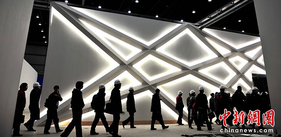 上海世博會籌辦工作已進入最后沖刺階段,在世博建設者的努力下,放眼浦江兩岸的世博園區(qū),星羅棋布的外國國家館、企業(yè)館和城市最佳實踐區(qū)案例館各具特色,爭奇斗艷。圖為可容納數(shù)千名記者的世博新聞中心。陳杰/CFP