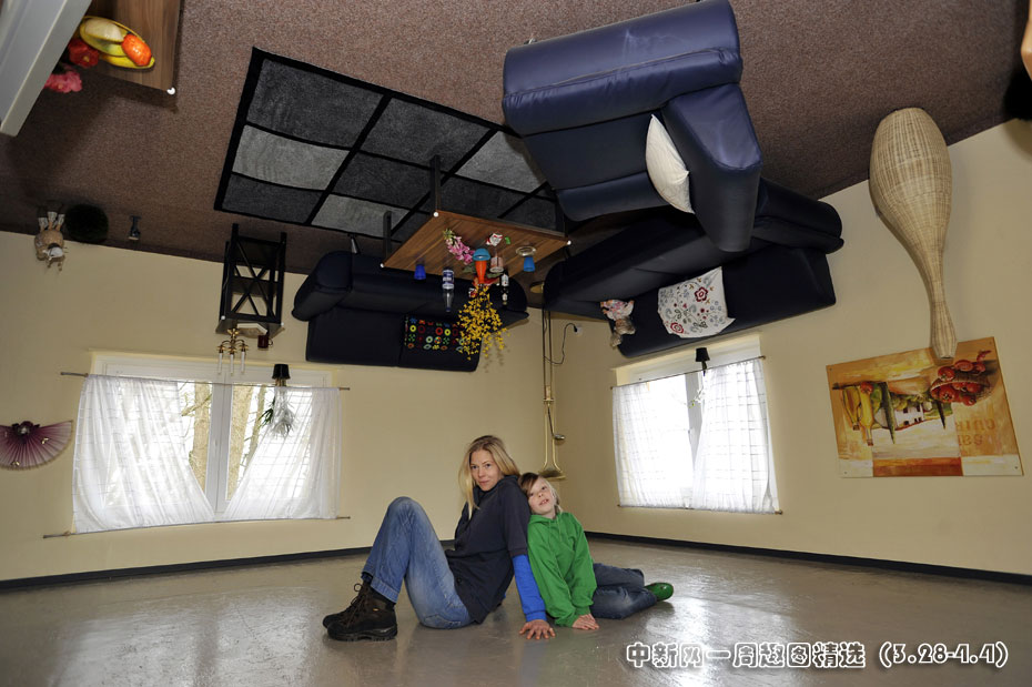 3月30日,德國蓋托夫市“瘋狂的房子”面向公眾開放。該房屋整個顛倒里面的家具也是被釘在屋頂上的。圖片來源:中國新聞網>>點擊觀看詳細內容