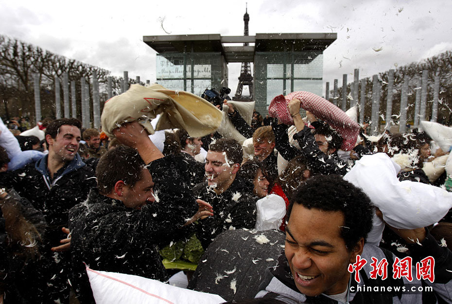 4月3日是國際“枕頭大戰(zhàn)”日。在這一天,多個國家的“枕頭大戰(zhàn)”愛好者相約走上街頭,用獨特的方式來慶祝他們的節(jié)日。圖片來源:中國新聞網(wǎng)