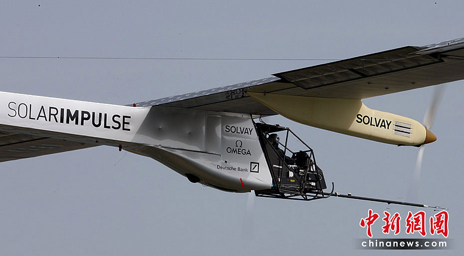 當?shù)貢r間4月7日上午,全球首架依靠太陽能驅(qū)動的飛機進行首次試飛,預(yù)計此種新型飛機將在2011年實現(xiàn)環(huán)球航行。圖片來源:中國新聞網(wǎng)