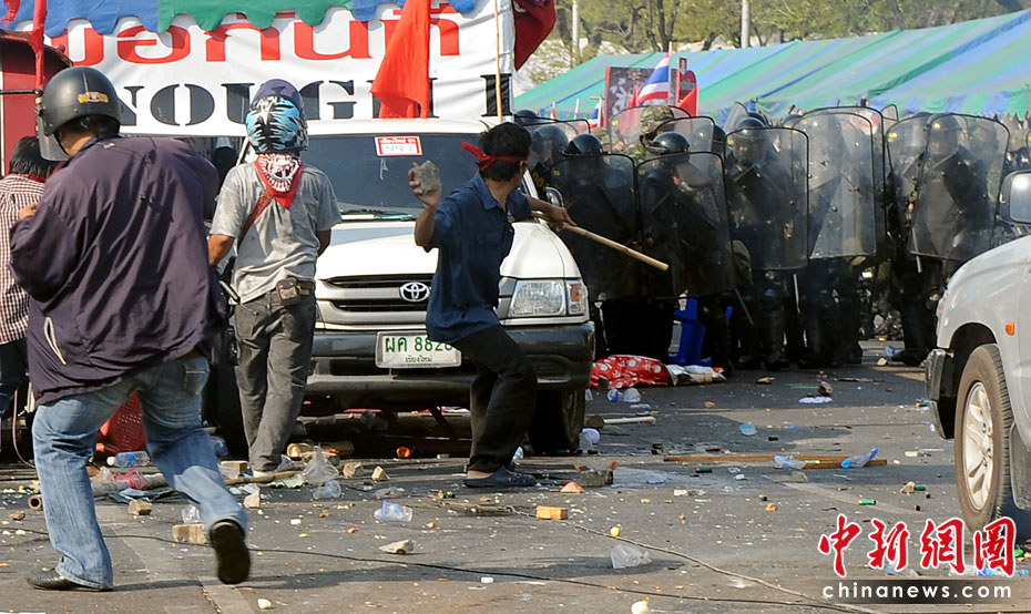 4月10日,泰國軍隊在首都曼谷對支持前總理他信的“紅衫軍”進行武力驅散,雙方爆發嚴重沖突,目前已造成18人死亡,數百人受傷。圖片來源:中國新聞網