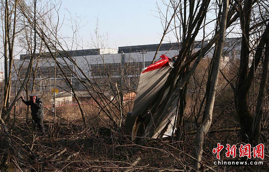 4月11日,波蘭總統(tǒng)卡欽斯基專機在俄羅斯斯摩棱斯克軍用機場墜毀地點附近的道路開通,但是警戒線核心區(qū)仍然關閉。俄波調查人員正在現場工作。圖片來源:中國新聞網