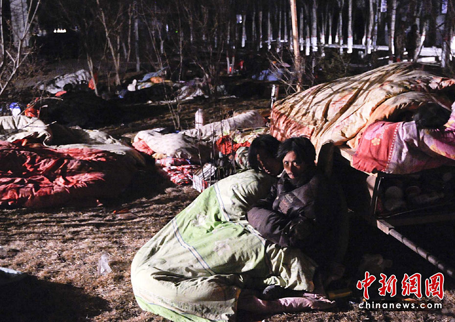 圖為4月15日凌晨,青海玉樹(shù)地震受災(zāi)民眾在露天休息。中新社發(fā) 廖攀 攝