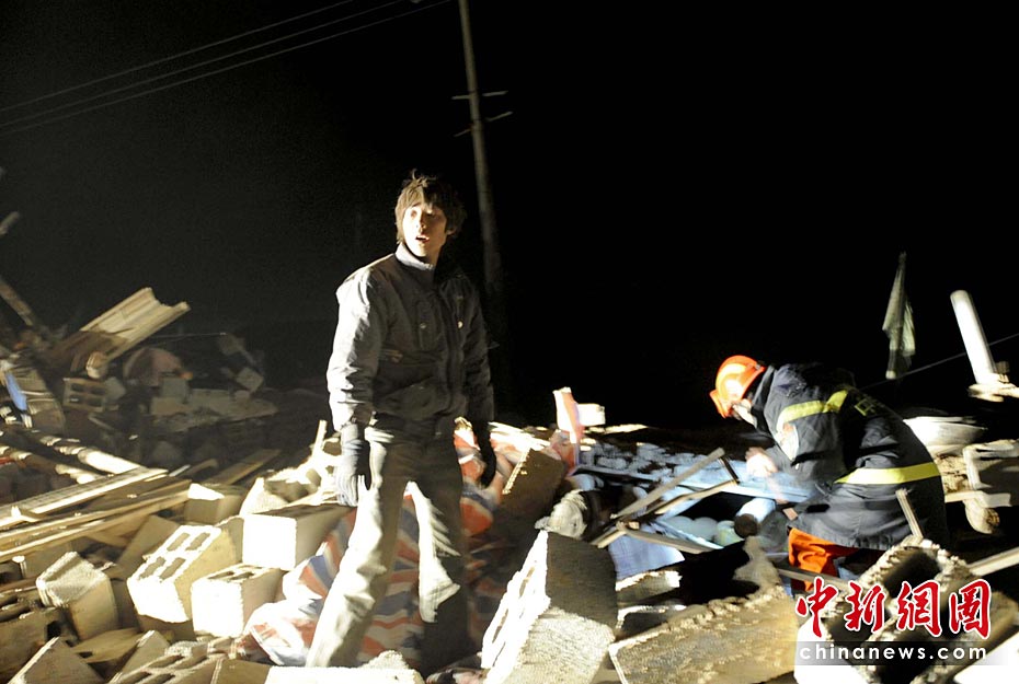 圖為4月15日凌晨1時,中國國際地震救援隊隊員在玉樹地震災區展開救援工作。中新社發 廖攀 攝