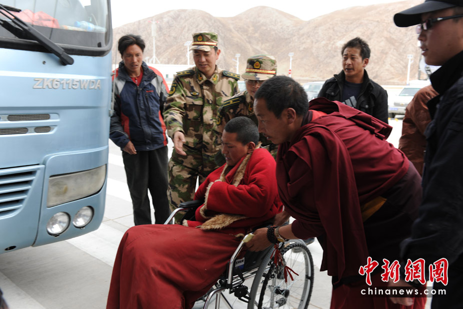 4月15日,玉樹地震傷員正源源不斷的從玉樹機場乘飛機,被運往成都等地救治。中新社/中新網記者 符永康 攝