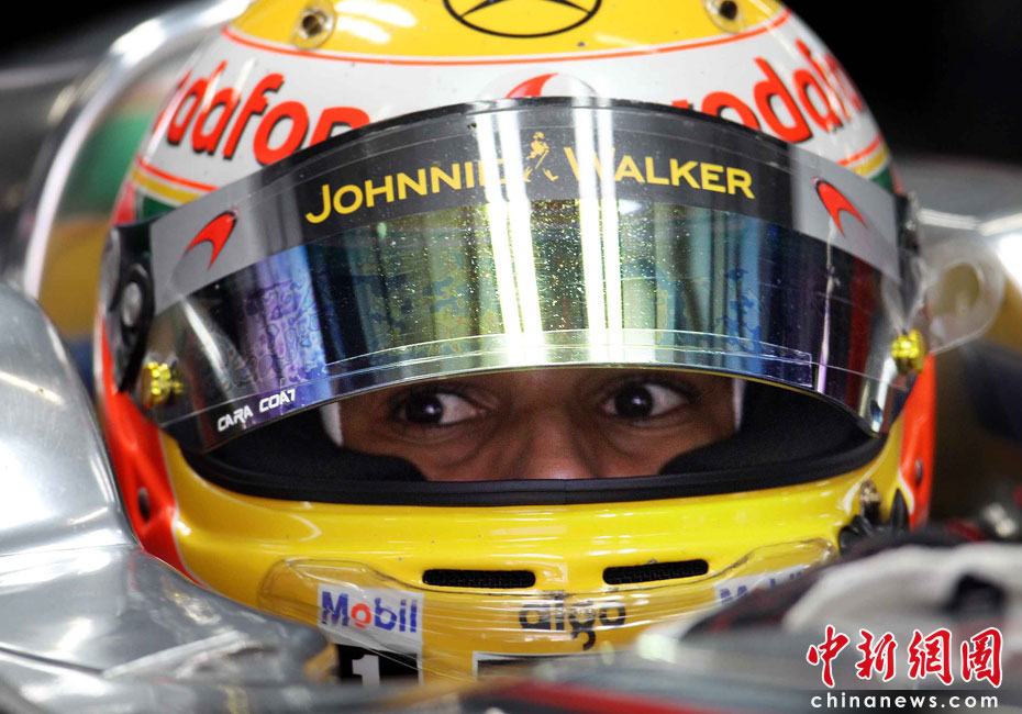 4月16日,2010國際汽聯F1世界錦標賽上海站在上海國際賽車場開始車手第一、第二次練習賽。圖為代表邁凱輪車隊出戰的英國車手漢密爾頓跑出當日最好成績。中新社記者 任晨鳴 攝