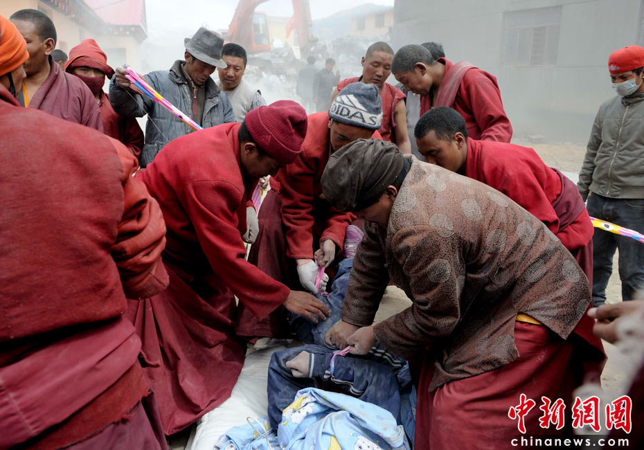 玉樹僧侶積極協助挖掘遇難者遺體