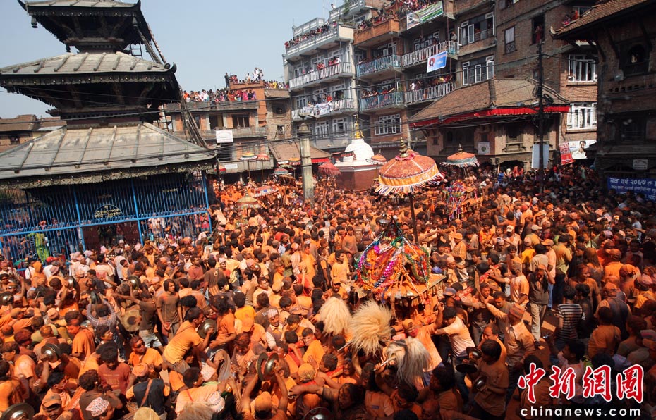 尼泊爾歡慶尼歷新年 人群街頭灑紅狂歡