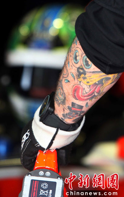 圖為法拉利車隊技師的紋身。中新社記者 任晨鳴 攝