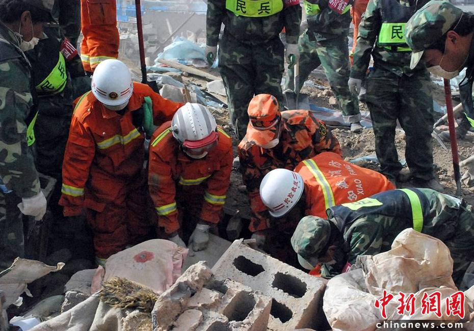 西藏公安消防部隊近日赴玉樹抗震救災分隊103名官兵分成5個小組在不同區(qū)域展開搜救。圖為西藏消防救援官兵與當?shù)孛癖黄鹁仍V行律绨l(fā) 劉毅 攝