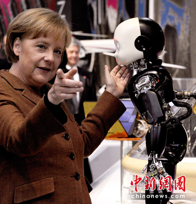 德總理工業博覽會上與機器人“逗樂”
