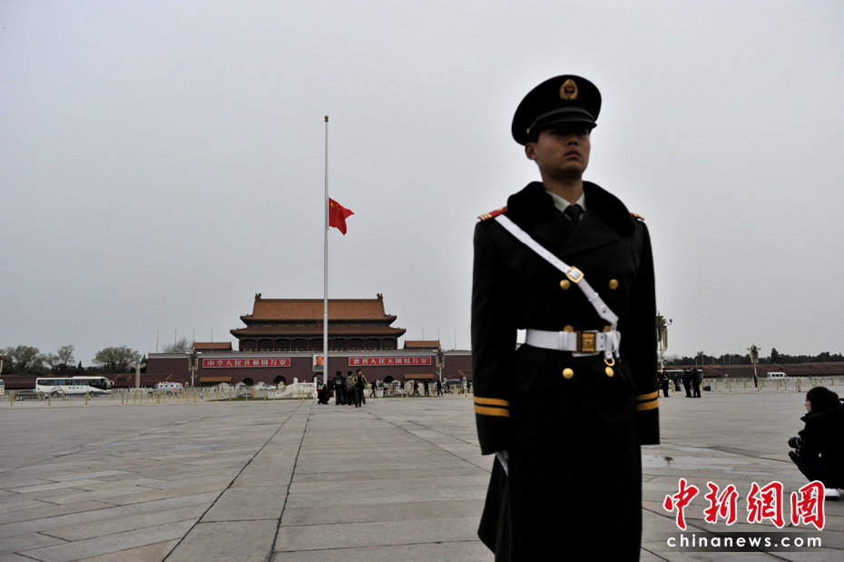 天安門廣場下半旗志哀