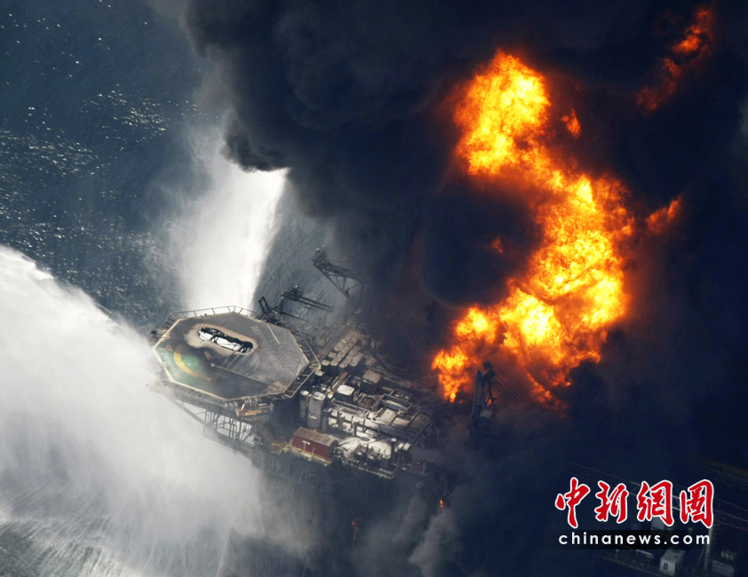 4月21日,美國路易斯安那州一處海上鉆井平臺發生爆炸,造成至少11人失蹤、7人重傷。這起爆炸發生在20深夜,但直到21日中午,爆炸引起的大火仍在熊熊燃燒。目前鉆井平臺已嚴重傾斜超過70度,隨時可能傾覆入海。