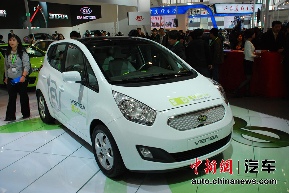 第十一屆北京國際車展23日開幕,在本屆以“暢想綠色未來”為主題的車展上,新能源車成為最大亮點。圖為起亞Venga電動車 王槊 攝