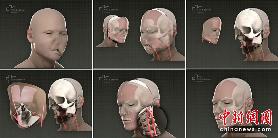 4月23日,由30位西班牙醫(yī)生組成的一個醫(yī)療小組表示,他們已經(jīng)成功進行了世界首例完整面部移植手術。這項史無前例的手術是上個月為一名面部在事故中嚴重受損的年輕男患者進行的。圖片來源:中國新聞網(wǎng)