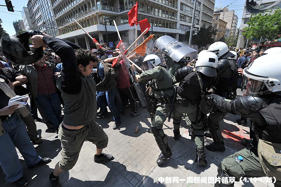 周四(22日),希臘示威者與防暴警察在希臘首都雅典發生激烈沖突。