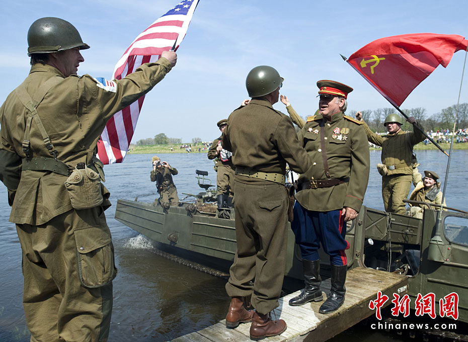 演員著二戰軍裝重現“易北河會師”