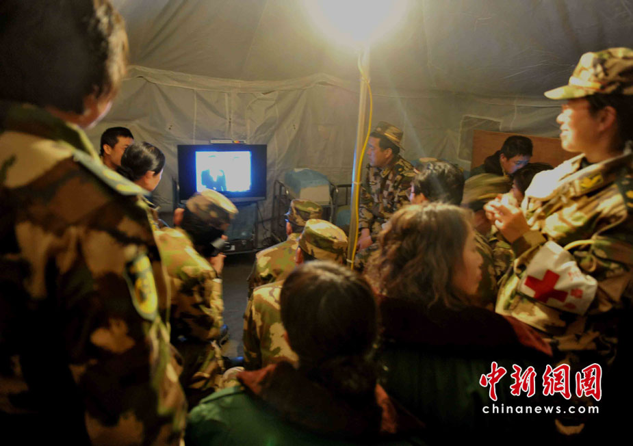 武警青?傟犛駱渲ш犑亲钕韧度肟拐鹁葹牡南蠕h部隊,地震發生時恰逢部隊出操,營房嚴重受損而官兵平安無恙。這里立即成為抗震救災的軍民和媒體的大本營之一,醫療救護隊和新型炊事車晝夜為軍民服務。集結在地震災區的各路部隊從4月低之前全面轉入安置群眾和災后重建,這里的的后勤已經得到基本保障。 中新社記者 賈國榮 攝